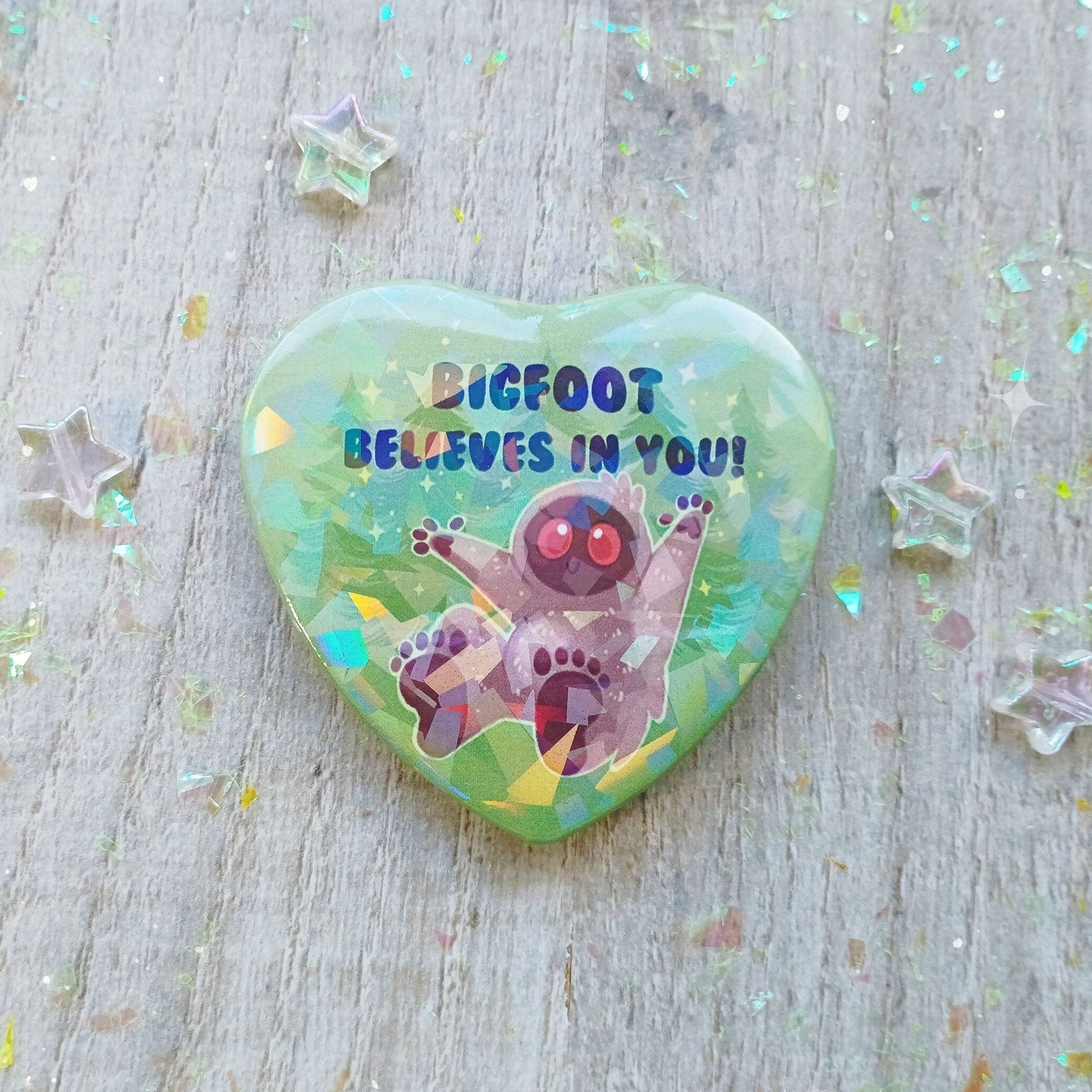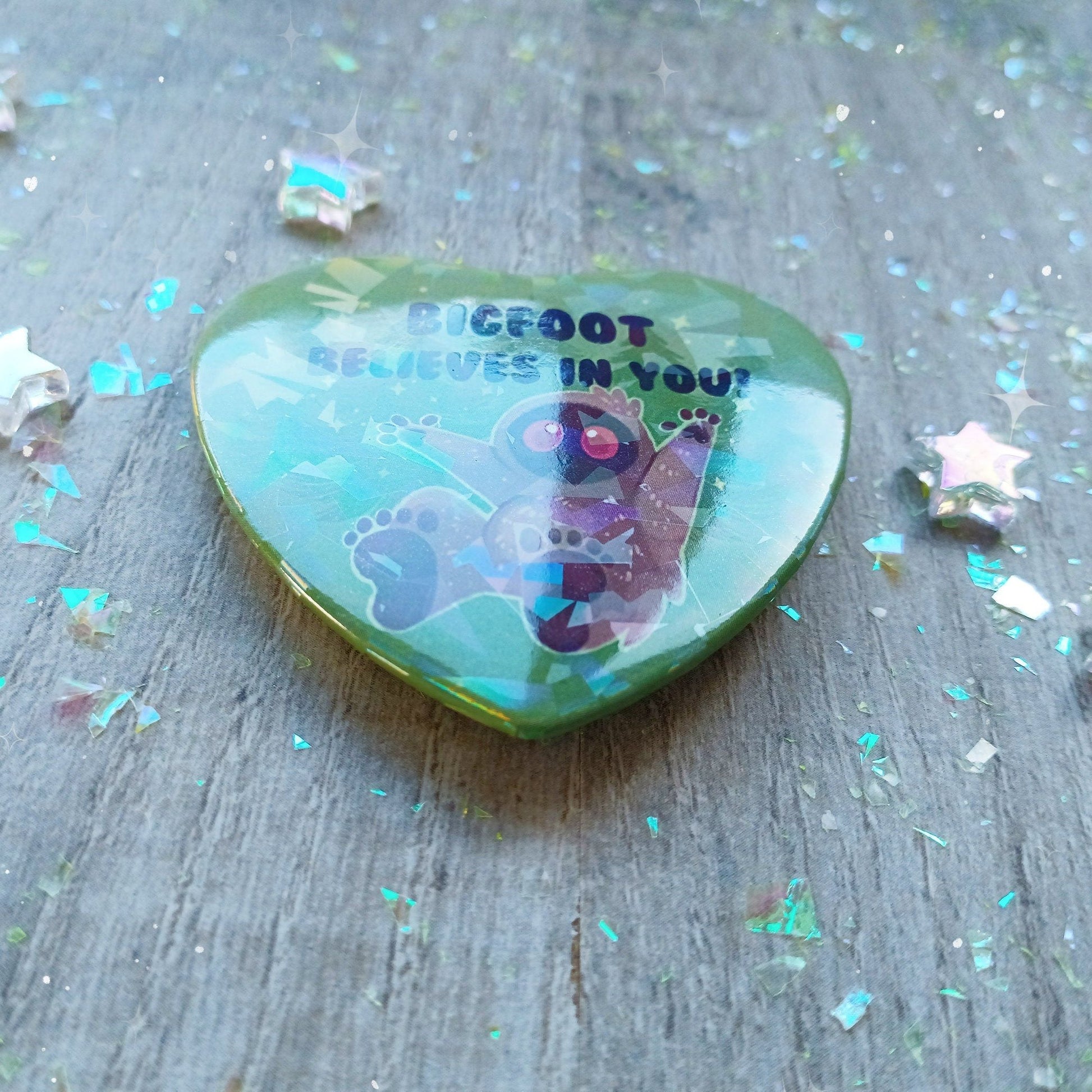 ¡Bigfoot cree en ti! Chapa de hojalata holográfica