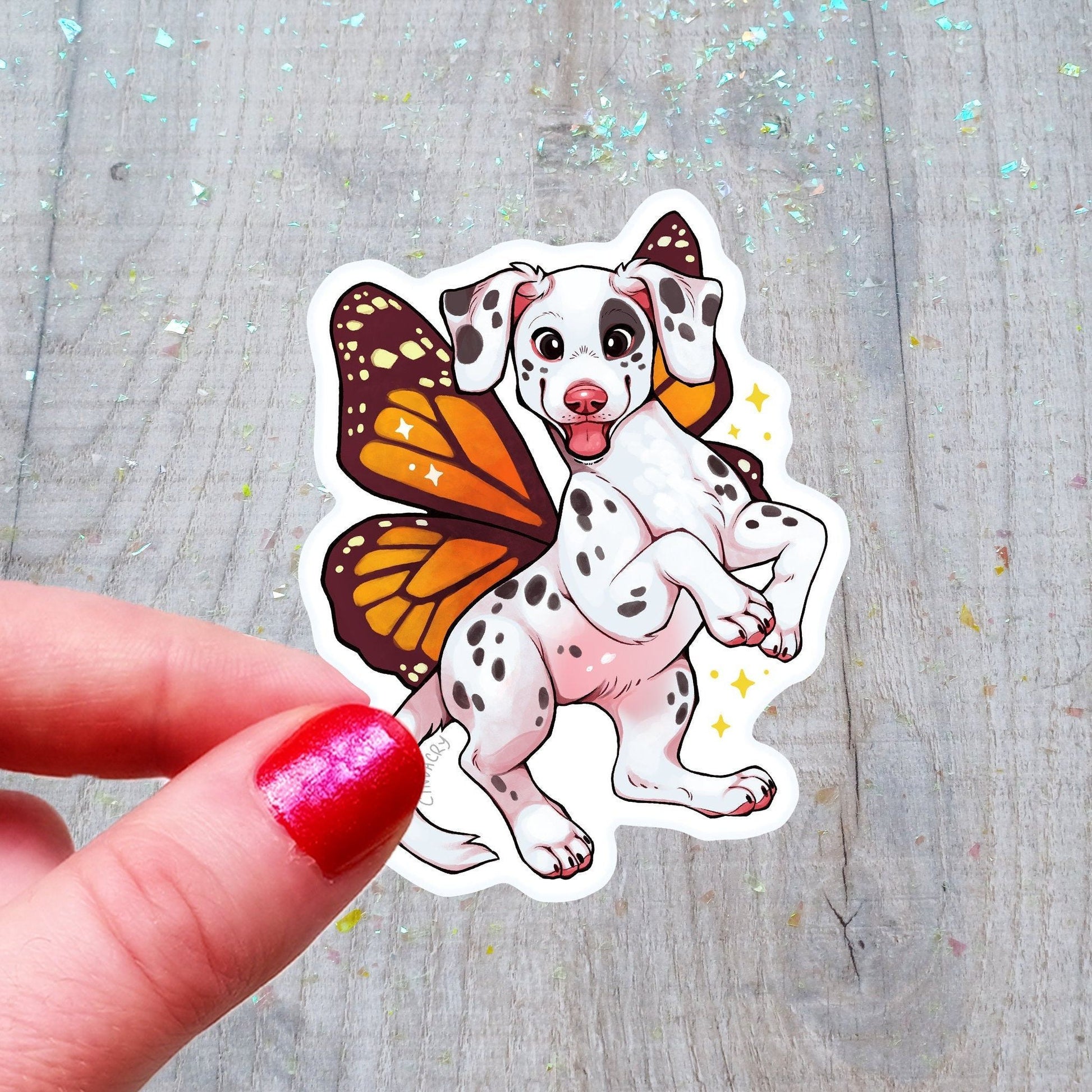 Pegatina de vinilo con diseño de hada y gatito gecko dálmata