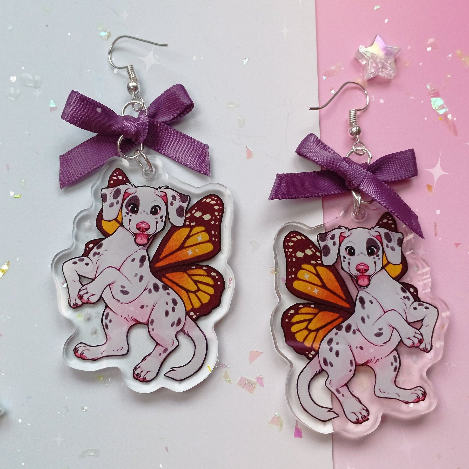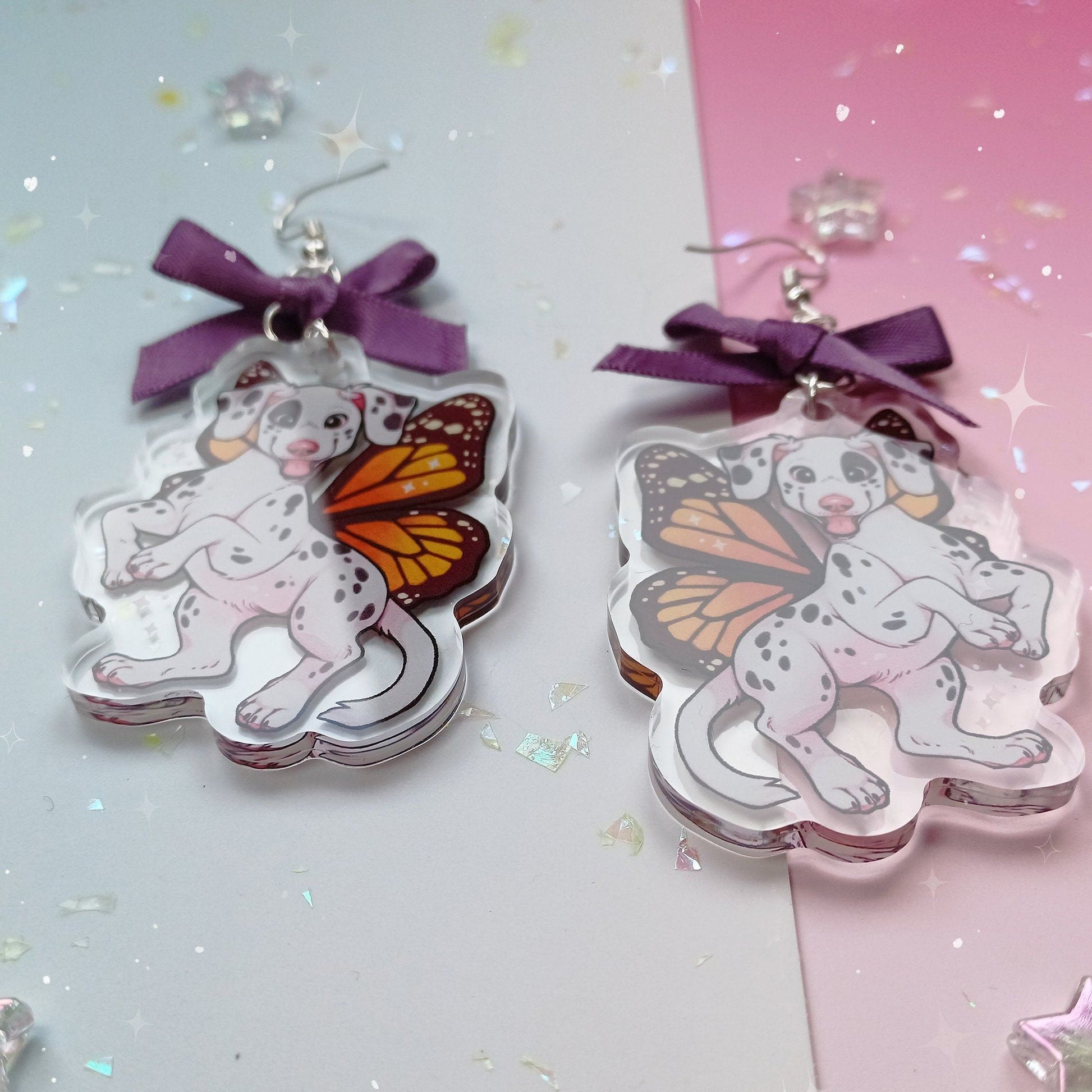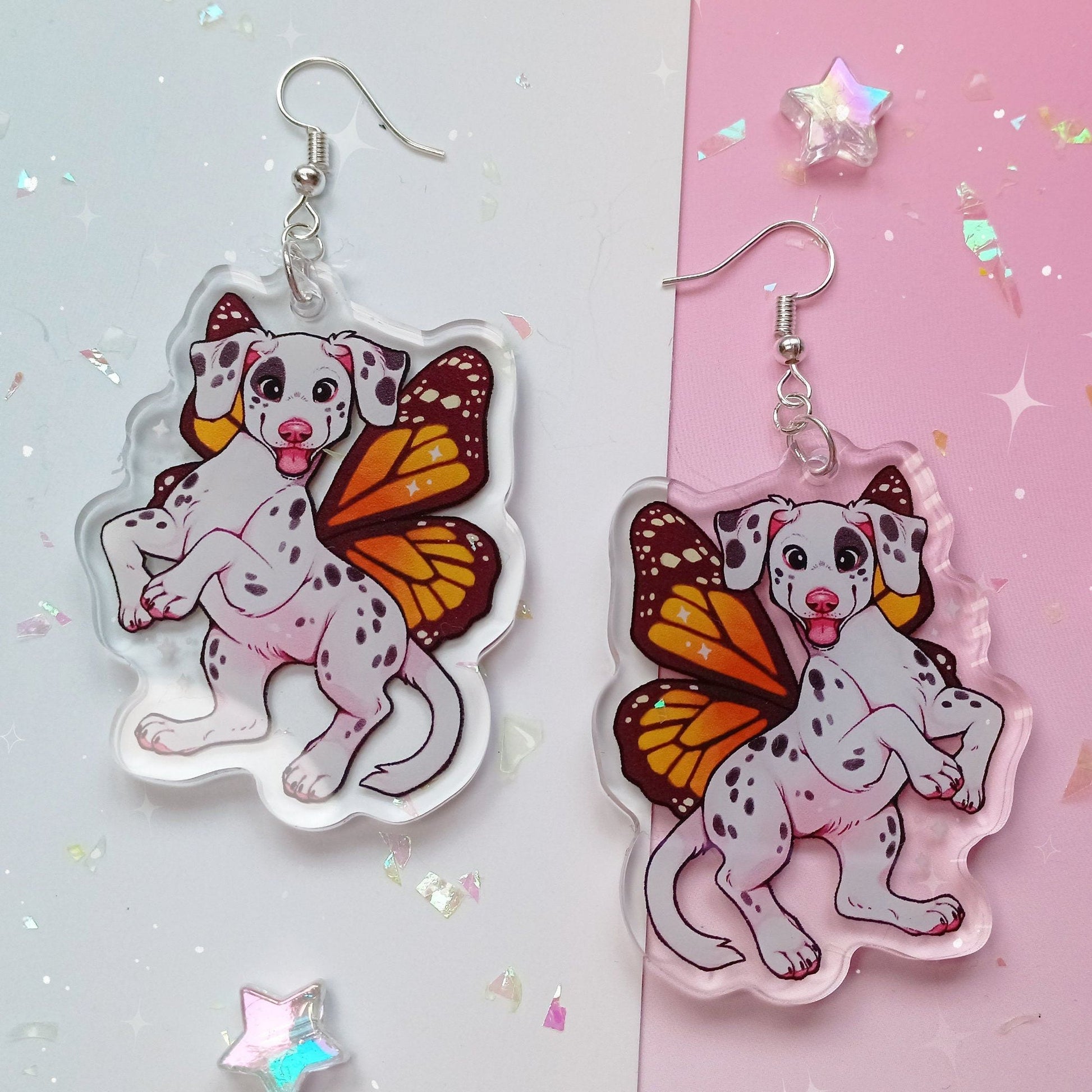 ✨ ¡Un par de pendientes mágicos de cachorros dulces y mágicos que presentan un dálmata de cara amable! Con muchas manchas, una barriga rosada y grandes alas de mariposa monarca, esta preciosidad está lista para aportar una dosis diaria de magia a tu guardarropa.