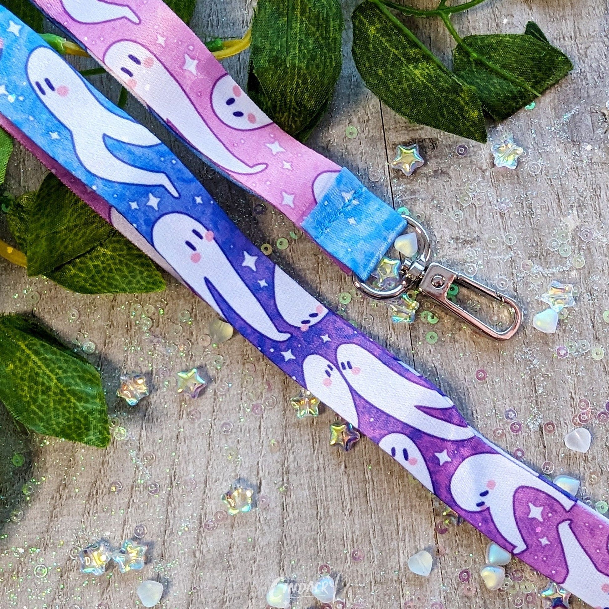 ✨ Un cordón con una familia de muchachos de piernas largas. Este diseño presenta un fondo moteado de rosa, violeta y azul con diferentes formas y tamaños de lombrices de tierra de Fresno en la parte superior.