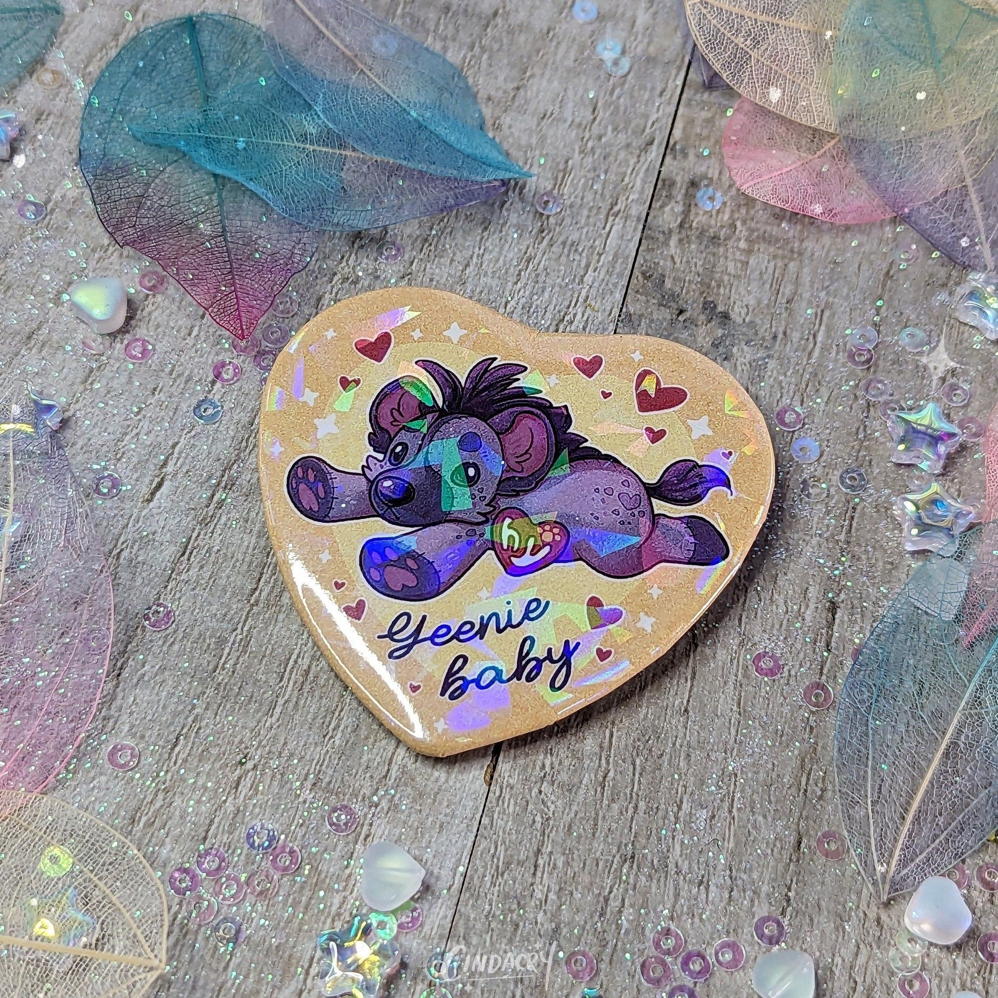 Insignia de hojalata holográfica peluda de la cría de hiena Yeenie