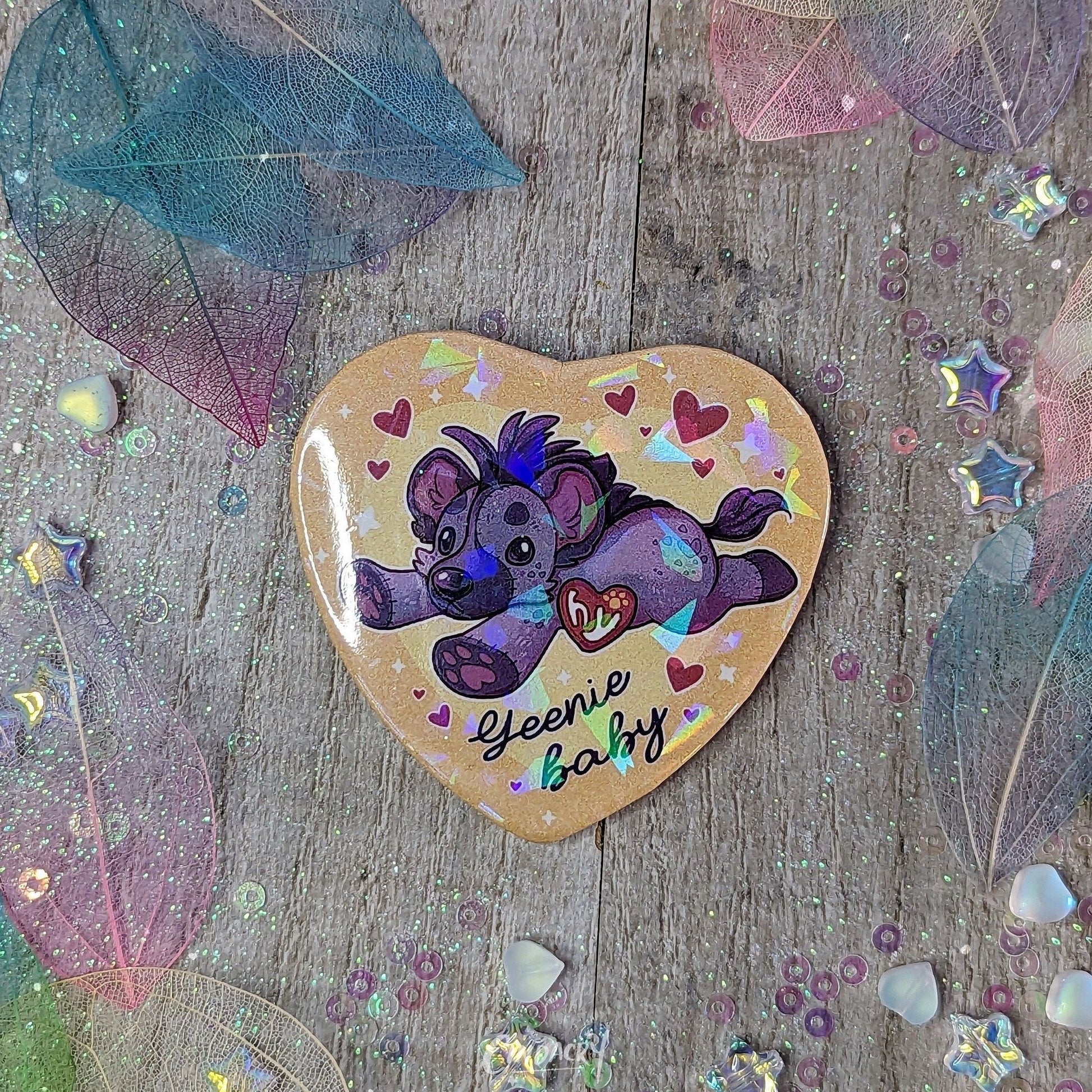 ✨ Una linda insignia que presenta a una hiena como un bebé Yeenie. Una parodia cruzada con los populares juguetes de peluche de los 90