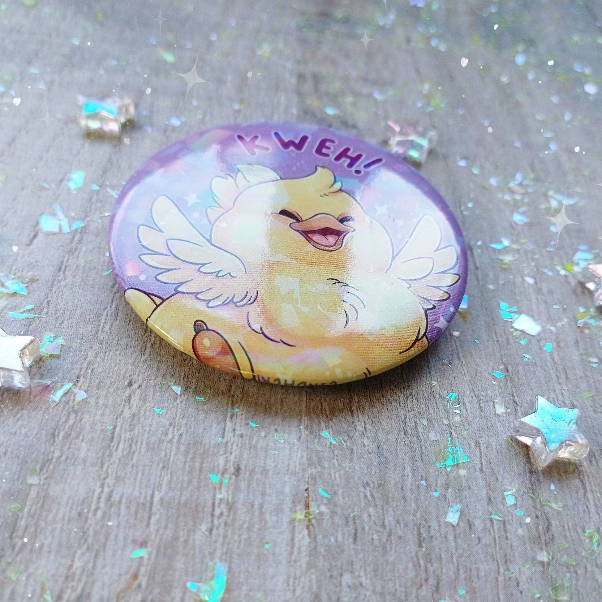 ✨ Una insignia dulce y brillante que presenta un pollo bastante grande... ¡Kweh!