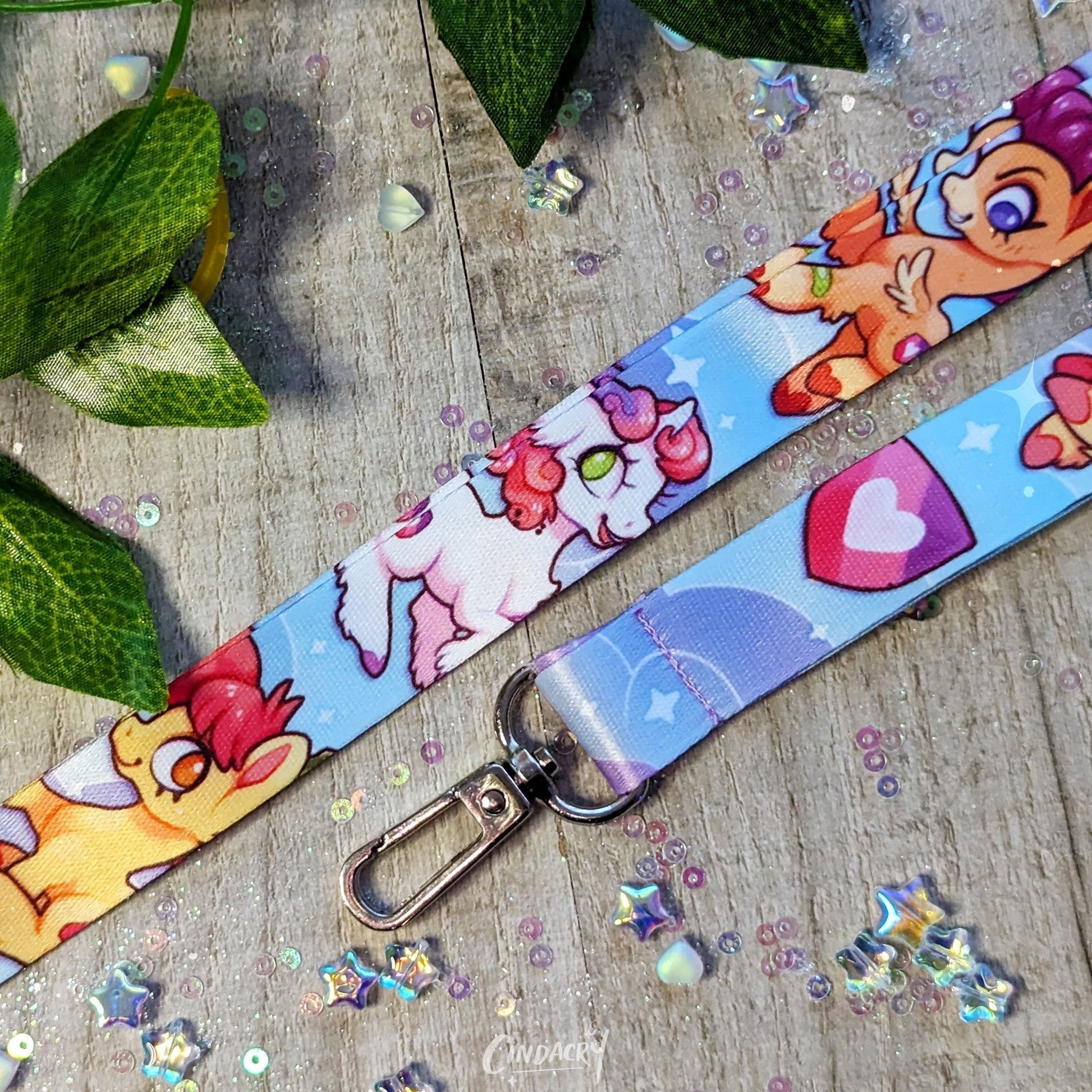 Brilla y resplandece con este cordón de MLP. Presenta ponis coloridos y un fondo de nubes.