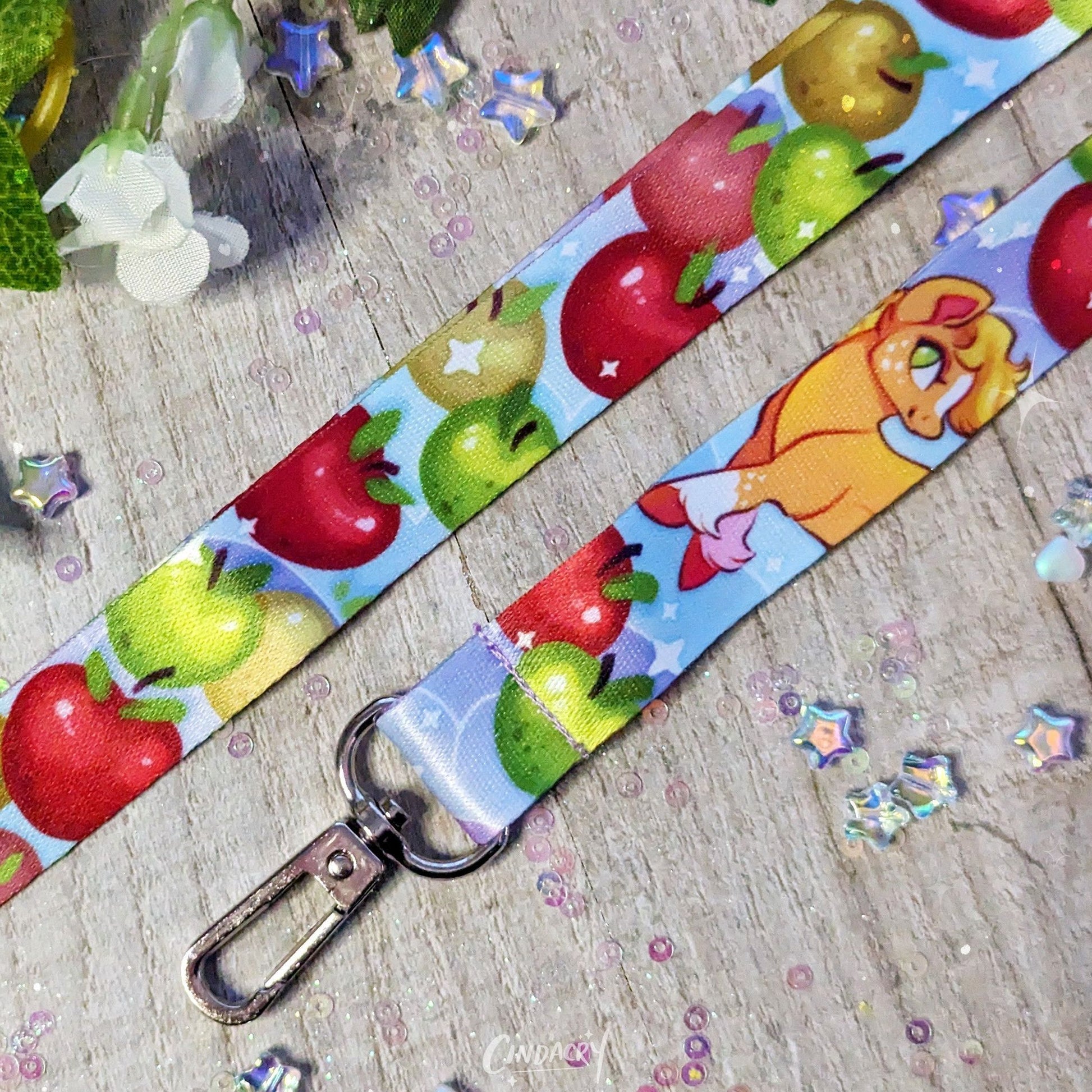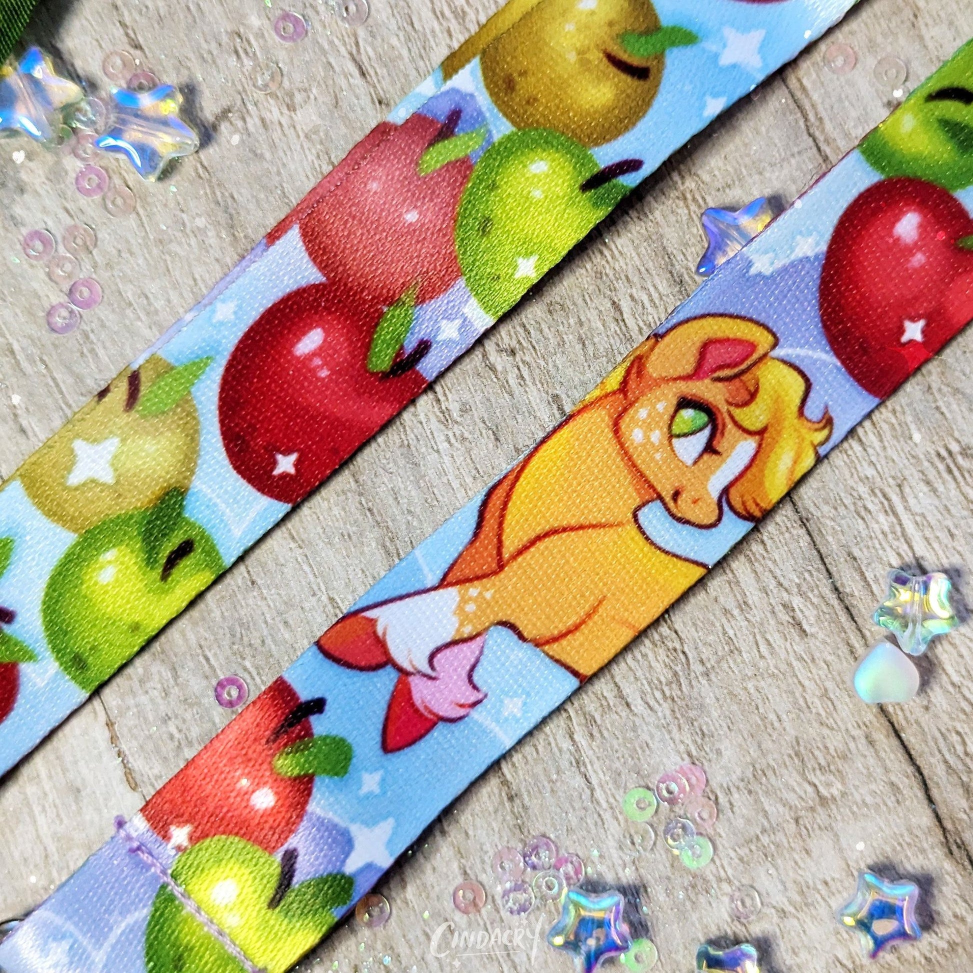 Brilla y resplandece con este cordón de MLP. Presenta tu poni campestre naranja favorito con un fondo de manzanas.