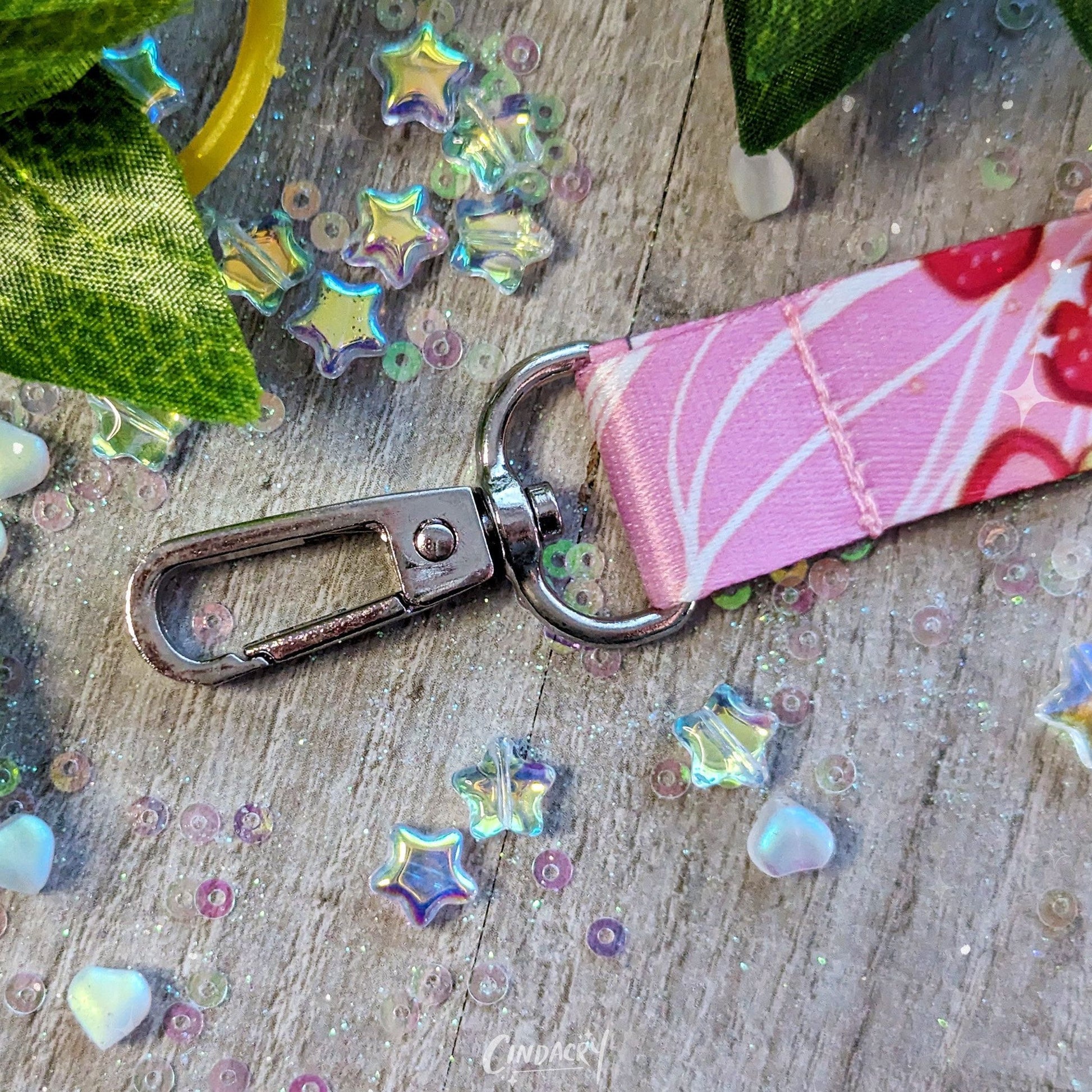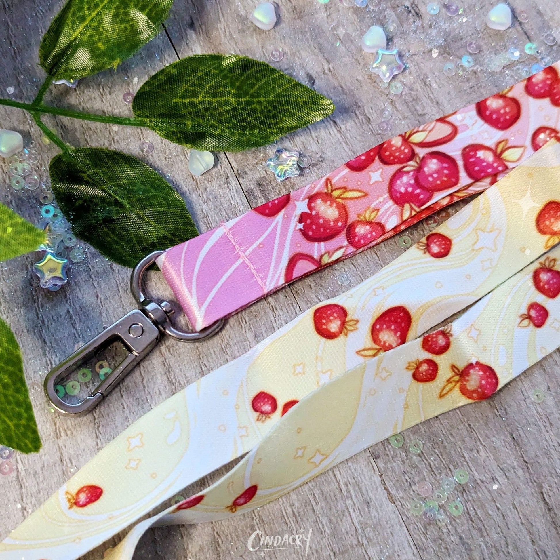 ✨ ¡Un cordón súper lindo que presenta fresas sobre un fondo cremoso rosa y amarillo!