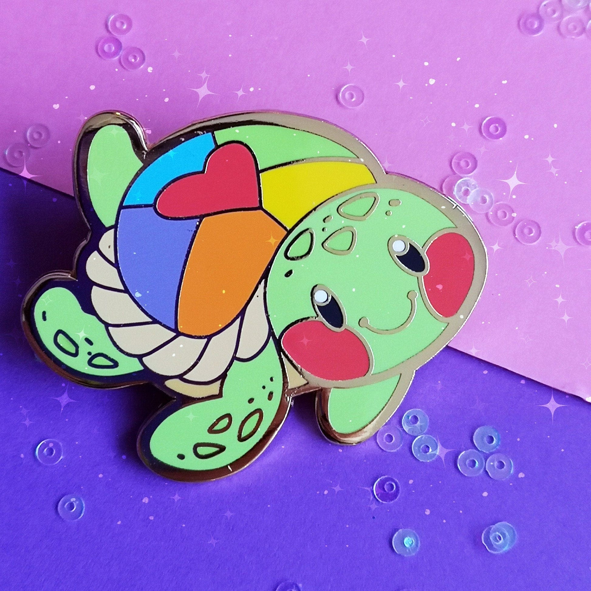 Un precioso pin de esmalte duro con una colorida criatura marina. ¡Llévalo con orgullo! Pin grande de esmalte duro con doble engarce y baño de oro 🌈