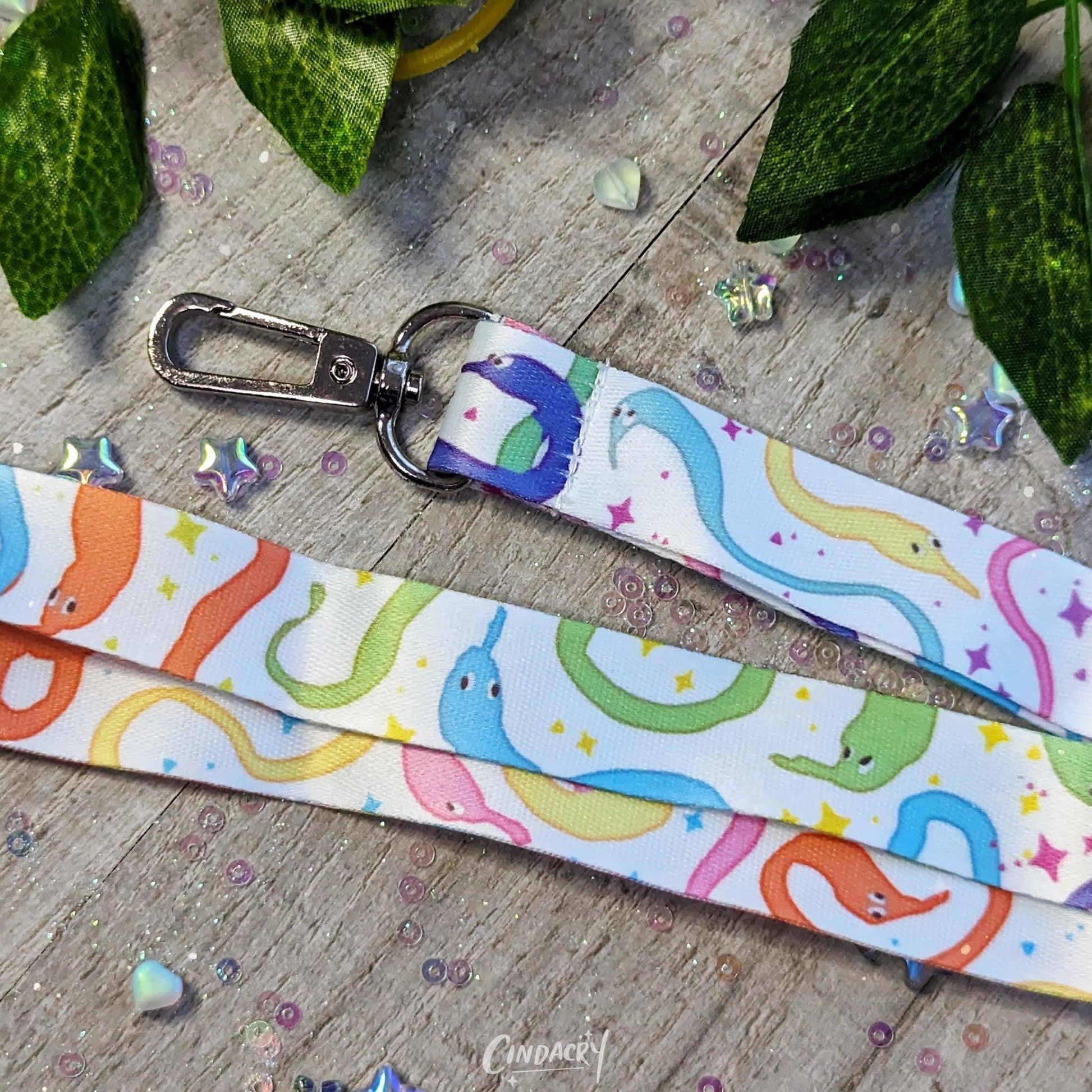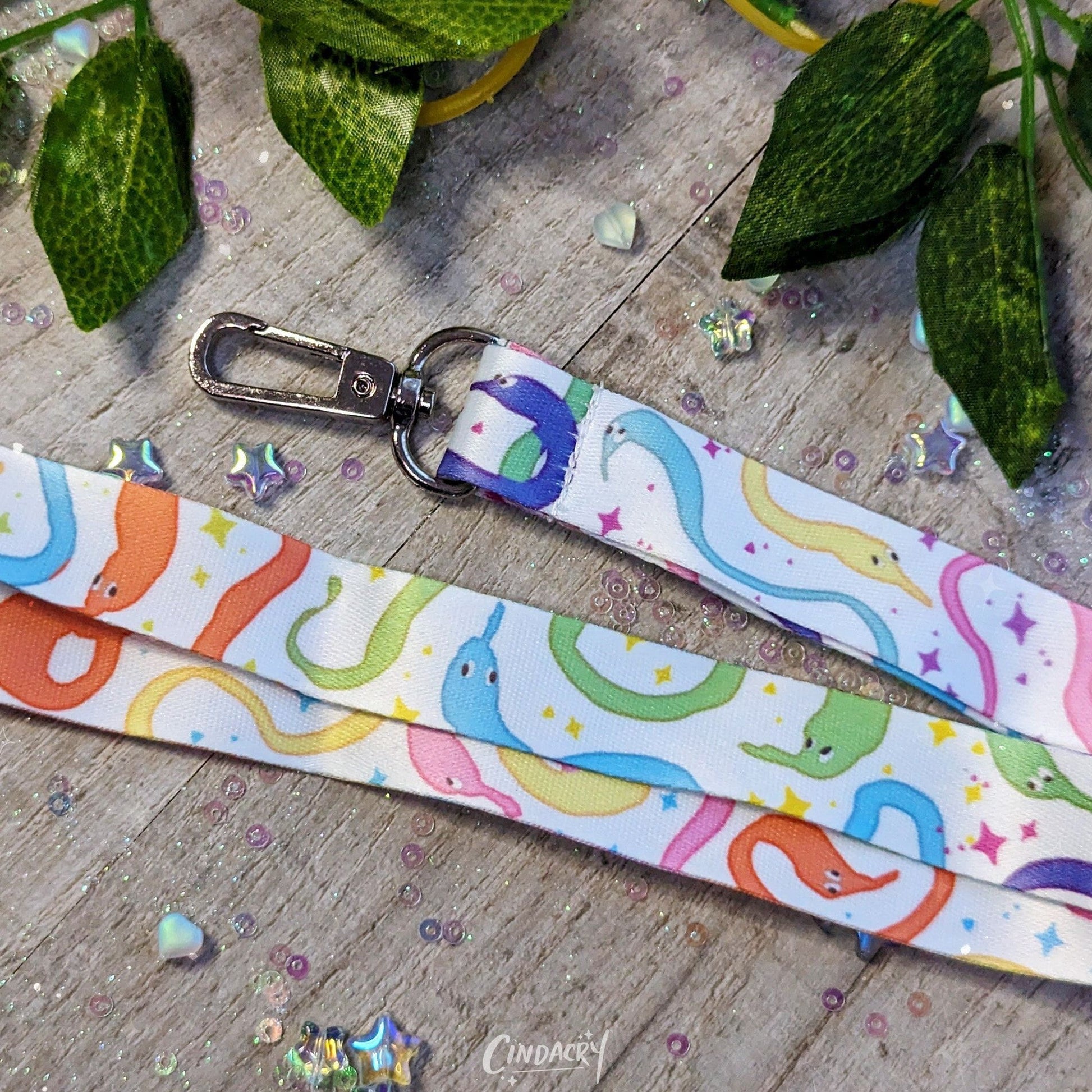✨ Un cordón con un montón de pequeños y divertidos gusanos multicolores en una cuerda que se entrelazan para crear un arcoíris caótico.